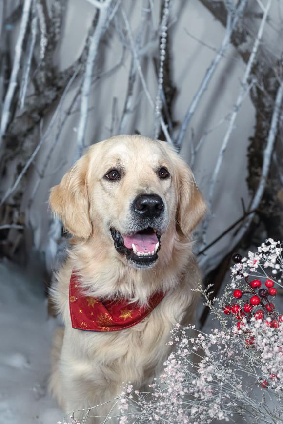 Ajoutez une touche de magie festive au look de votre compagnon avec notre bandana “Flocon Étoilé”. Ce modèle élégant, réversible et fait main, se distingue par ses motifs de flocons dorés sur fond bleu nuit d’un côté, et un tissu rouge intense de l’autre. Parfait pour les fêtes de fin d’année, il apporte style et chaleur à chaque sortie hivernale.