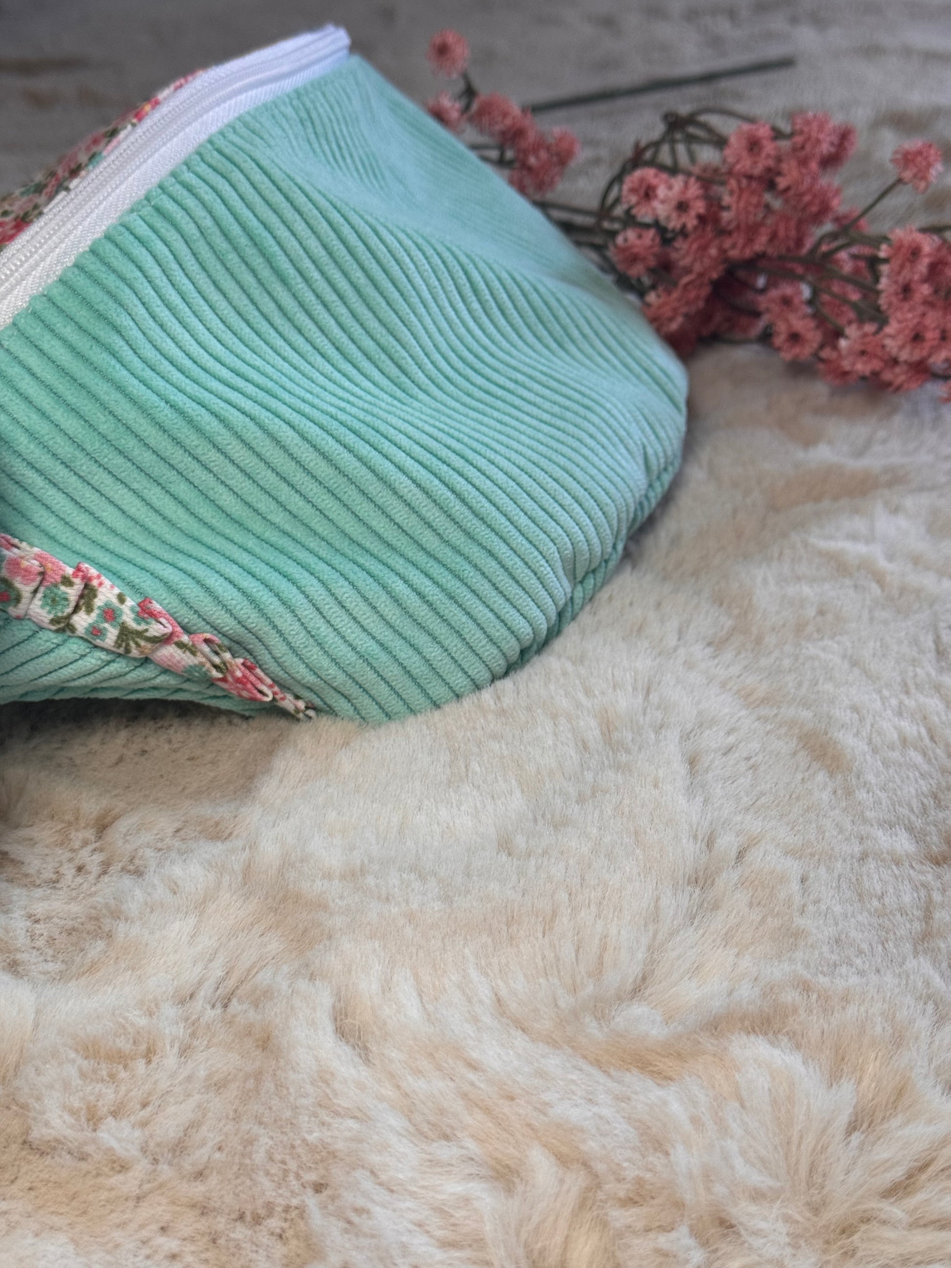 🌸 Son extérieur en velours côtelé vieux rose, certifié Oeko-Tex, apporte une touche chaleureuse et tendance, tandis que sa doublure fleurie révèle une personnalité douce et raffinée. Chaque détail a été soigneusement choisi pour créer une pièce unique et intemporelle.
